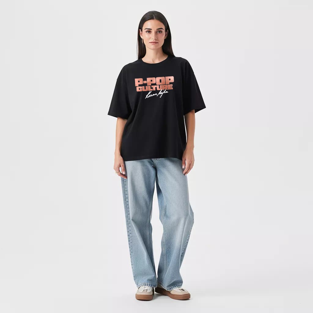 P-POP Culture Women Oversized T-shirt - Black / S