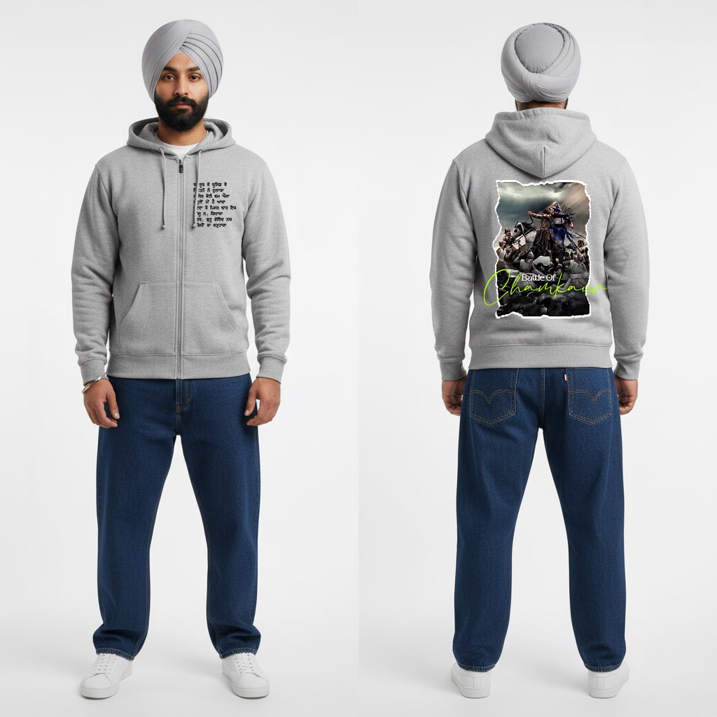 Show off your trendy side with the Battle of Chamkaur Punjabi Zipper Hoodie The colorful print on 100% cotton shell, two-ply hood with a colored lining, and the instantly recognizable all come together in this soft and durable hoodie that's made to last.
