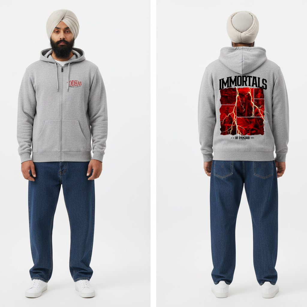 Immortal Of Panjab Zipper Hoodie - Light Grey / S