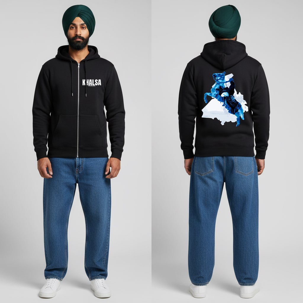 Show off your trendy side with the Khalsa Punjab Punjabi Zipper Hoodie The colorful print on 100% cotton shell, two-ply hood with a colored lining, and the instantly recognizable all come together in this soft and durable hoodie that's made to last.